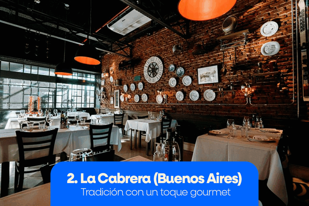 Si buscas una parrilla con cortes enormes y acompañamientos creativos, La Cabrera es tu lugar. Su bife de chorizo y su ojo de bife son legendarios, siempre servidos con una variedad de guarniciones que sorprenden.