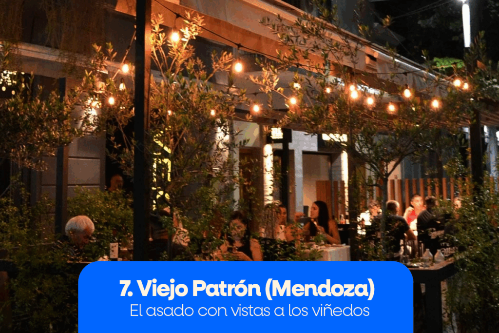 Para los que quieren salir de Buenos Aires y combinar asado con paisajes increíbles, Viejo Patrón en Mendoza es la elección perfecta. Cortes jugosos, buen vino y la Cordillera de los Andes de fondo.