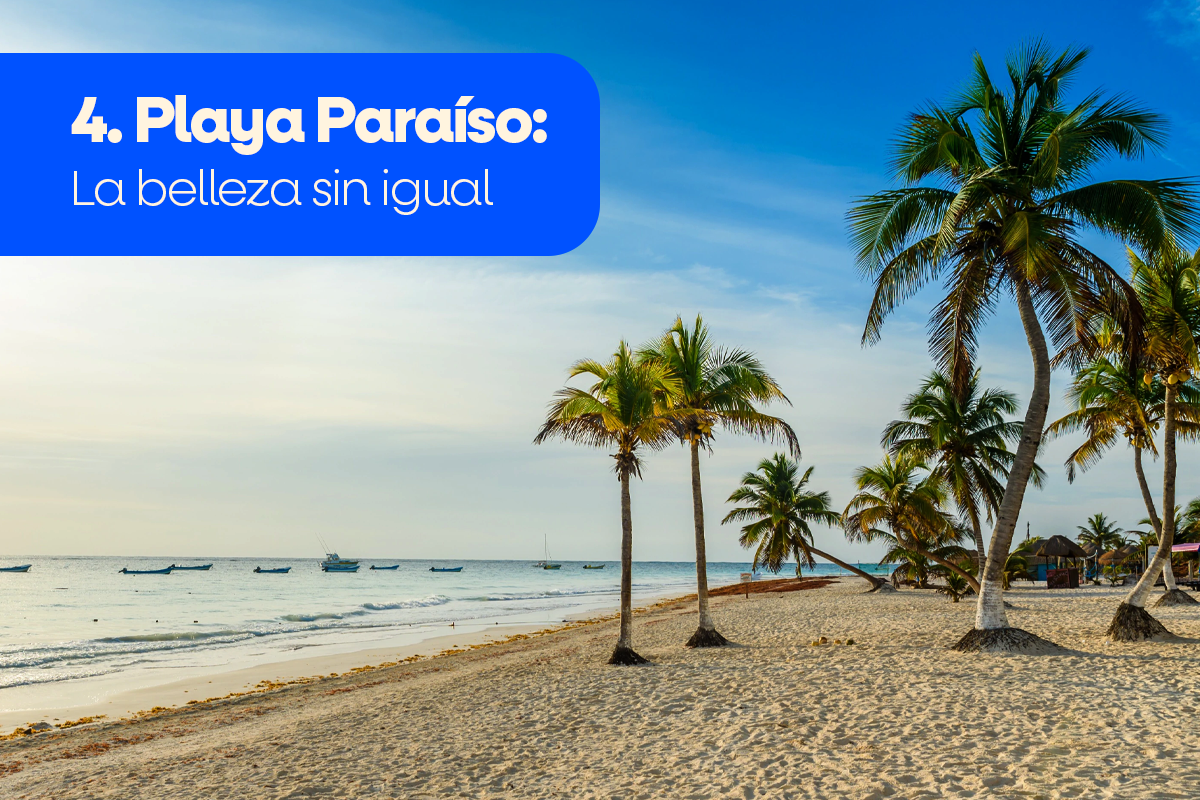 Si buscas la playa de tus sueños, probablemente la encontrarás en Playa Paraíso, que como su nombre lo indica es un lugar de ensueño. Esta playa se caracteriza por su arena fina y blanca, aguas calmas y su ambiente relajado. Además, está cerca de las famosas ruinas de Tulum, por lo que puedes aprovechar para combinar historia y naturaleza.