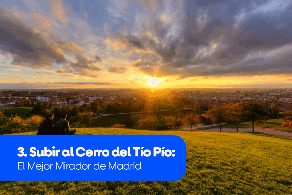 Si estás buscando un mirador increíble sin pagar nada, el Cerro del Tío Pío es el lugar ideal. Situado en el barrio de Vallecas, este parque es conocido por ser uno de los mejores puntos de vista panorámicos de la ciudad. Desde aquí, puedes disfrutar de unas vistas impresionantes del skyline madrileño, el Palacio Real, y los edificios emblemáticos de la Gran Vía. El cerro se ha convertido en un lugar popular para hacer picnic y ver el atardecer. ¡No te lo puedes perder!