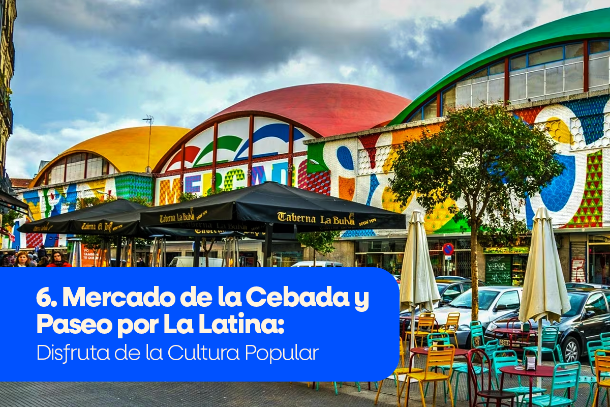 Si prefieres una actividad más urbana pero igualmente gratuita, el barrio de La Latina es uno de los lugares más representativos de Madrid. Su Mercado de la Cebada es uno de los más antiguos y populares de la ciudad, aunque no tiene coste, puedes recorrerlo y sumergirte en la vida local madrileña. Además, caminar por sus calles históricas te permitirá descubrir un Madrid tradicional lleno de cultura y encanto. Un recorrido ideal para combinar con un par de tapas gratuitas si vas en horario de comida.